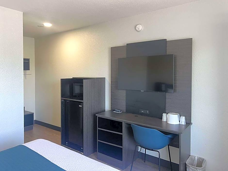 Room includes a cable TV, a desk and a telephone.